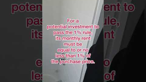 The 1% rule of real estate investing measures the price of the investment property against the gross income it will generate. For a potential investment to pass the 1% rule, its monthly rent must be equal to or no less than 1% of the purchase price. @JeffWybo